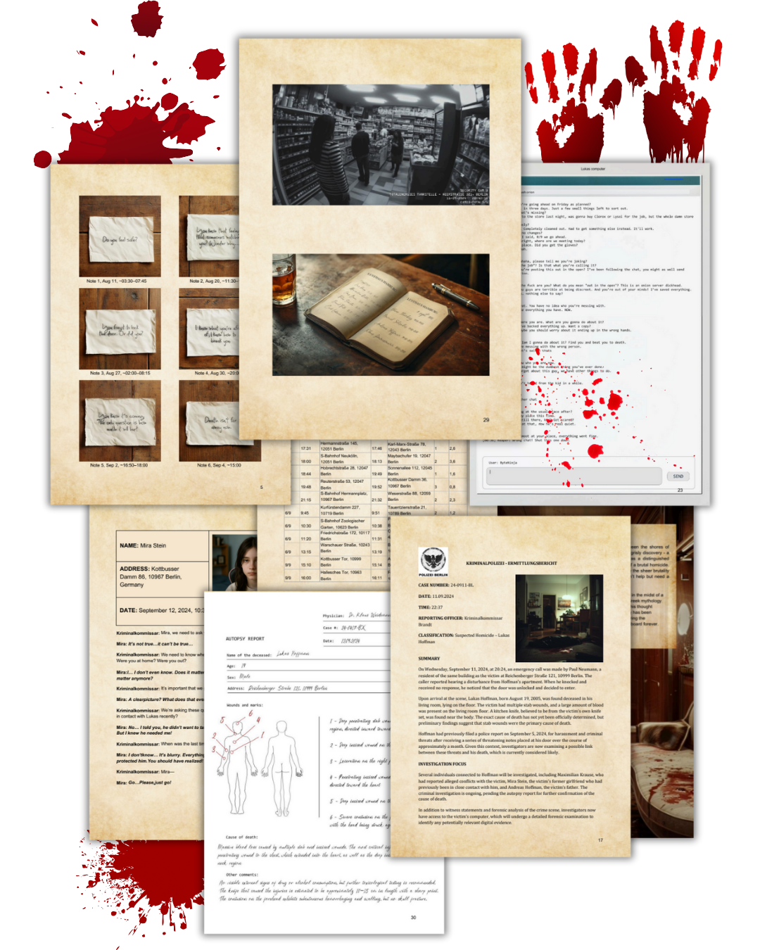 Berlin, Germany. Nineteen-year-old Lukas Hoffman begins receiving disturbing, anonymous messages. As the threats escalate, you take charge of the investigation. But what starts as harassment soon spirals into something much more complex and dangerous. This is our toughest case yet, recommended only after tackling the others first